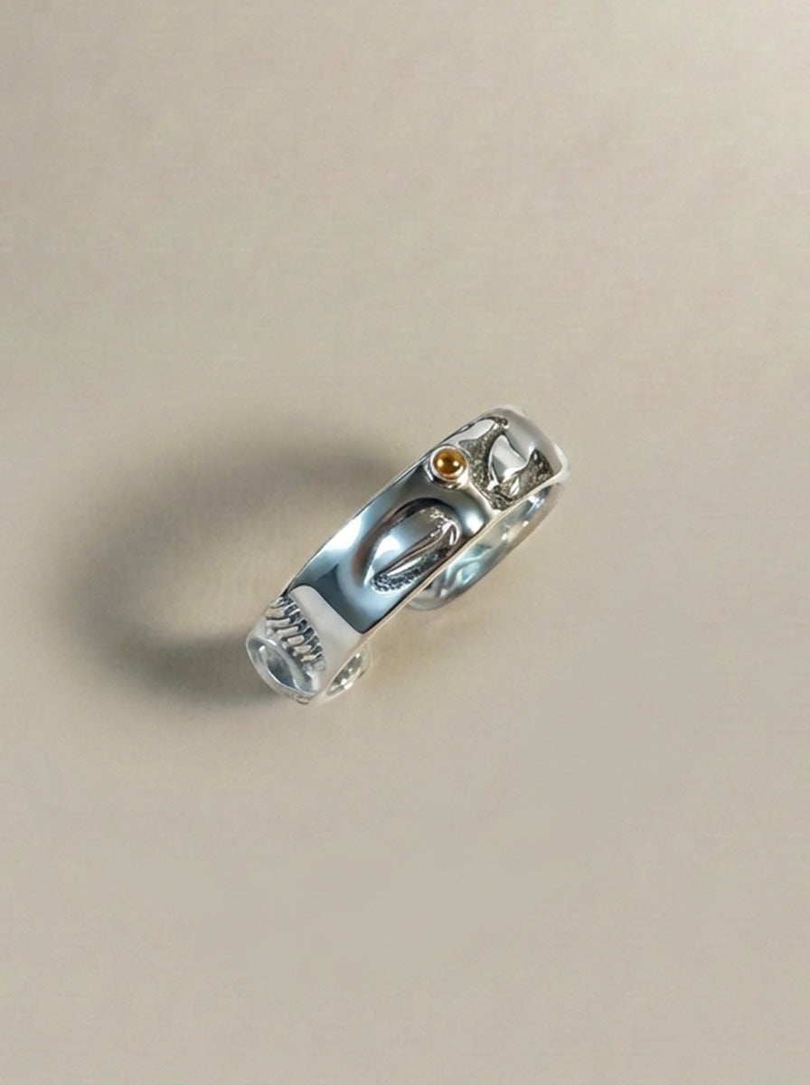 925スターリングシルバー 仏面 経文リング|職人手彫り 仏教マントラ フリーサイズリング