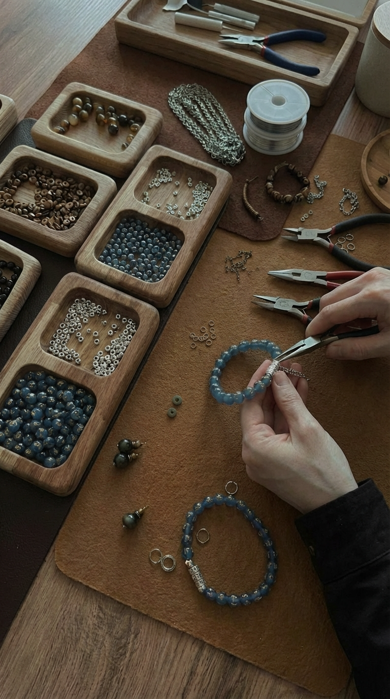BIUDAが届けたいのは、アクセサリーそのものではありません。手首に感じる天然石の重み、日常のなかのふとした間、自分を整える小さな儀式。沈香や白檀のほのかな香り、天然石の温かな手触り、京都の禅に通じる抑えた美——そのすべてが、日々の暮らしに静けさを添えます。