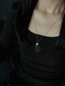 925スターリングシルバー 蓮花ペンダントネックレス|職人手彫り 仏教 蓮モチーフ チェーンネックレス