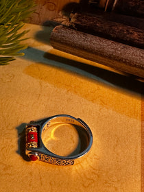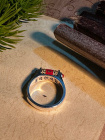 925スターリングシルバー 仏教経文 回転リング|職人手彫り 梵字オーム マニ車リング