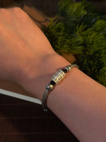 999純銀 蓮花 般若心経バングルブレスレット|職人手彫り 般若心経カフブレスレット