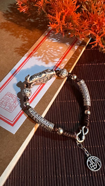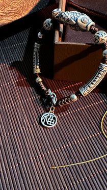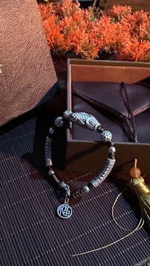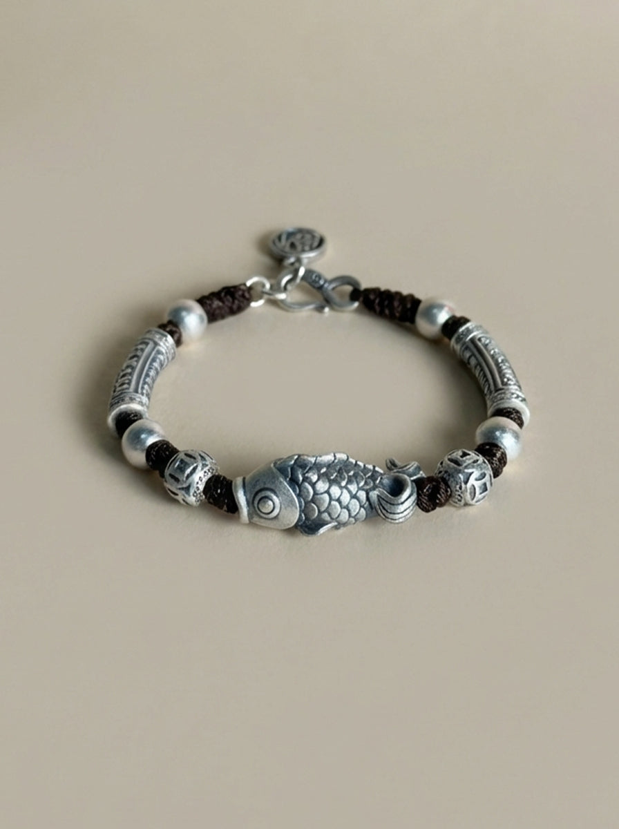 999純銀 鯉 チェーンブレスレット|職人手彫り 登龍門 開運チャームブレスレット