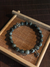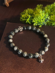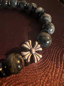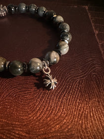 AAA天然イーグルアイ(ホークスアイ)ブレスレット|925スターリングシルバー クロスチャーム・守護ブレスレット