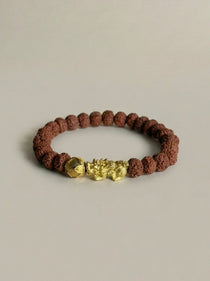 Bodhi Seed Pixiu Bracelet · Gold Plated Charm · Buddhist Prayer Bead Mala · Handcrafted Protection Bracelet